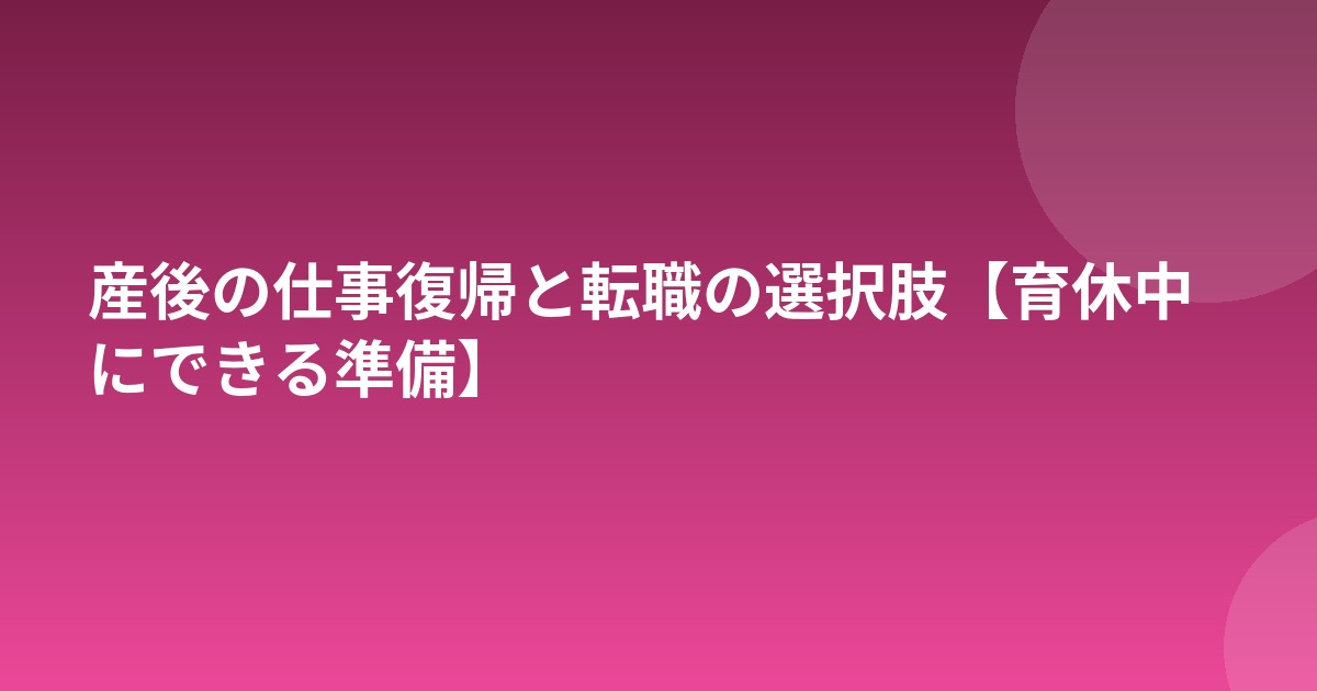 出産後のキャリアについて悩むママは少なくありません。「元の職場に戻るべきか」「転職すべきか」「しばらく専業主婦でいるべきか」。それぞれにメリット・デメリットがあります。この記事では、産後の仕事復帰に関する選択肢と、育休中にできる準備について詳しく解説します。
