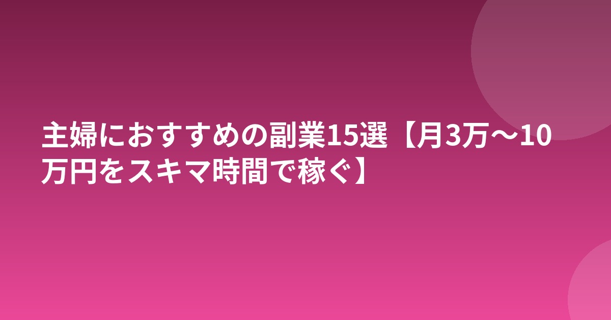 主婦におすすめの副業15選【月3万〜10万円をスキマ時間で稼ぐ】