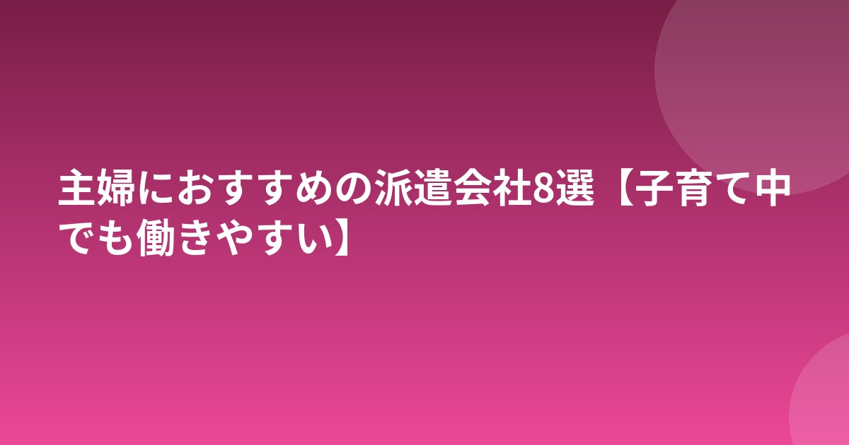 主婦におすすめの派遣会社8選【子育て中でも働きやすい】