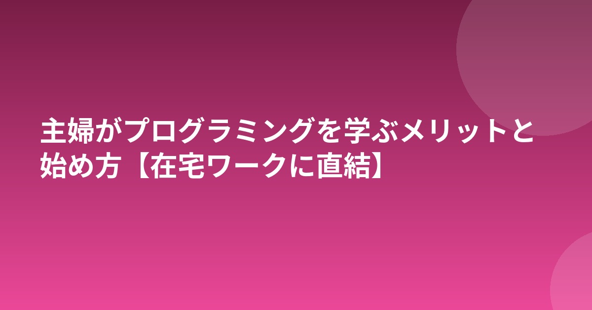 プログラミングは主婦の在宅ワーク・再就職の強力な武器になります。「文系だから無理」は誤解。この記事では未経験から始める具体的な方法を解説します。