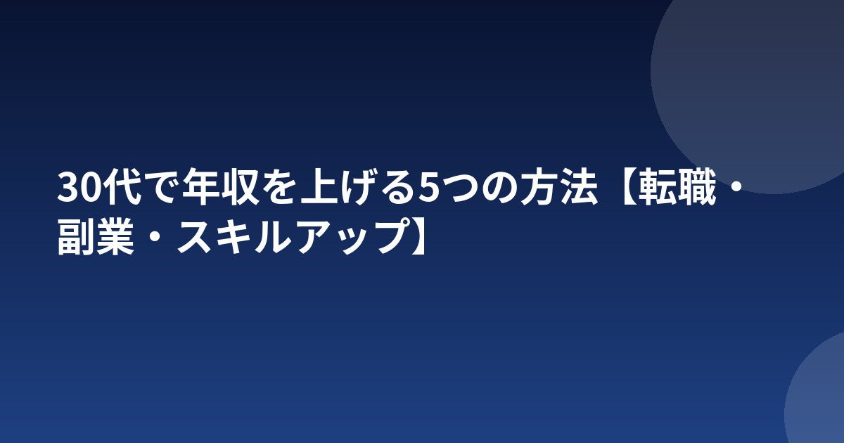 30代は年収を大幅に引き上げられる最後のチャンスとも言われます。転職・副業・スキルアップなど複数の方法を組み合わせて、戦略的に年収アップを目指しましょう。大切なのは「今の会社で年収が上がらないなら、上がる環境に移る」という柔軟な発想を持つことです。