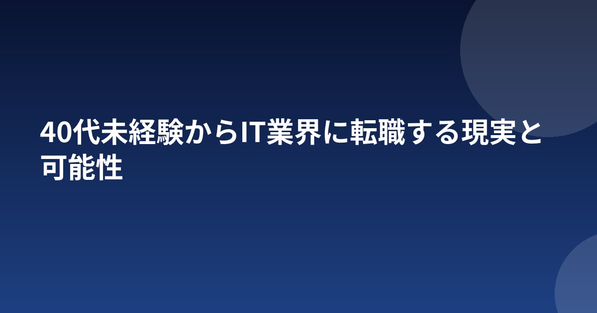 結論から言えば、40代未経験からのIT転職は簡単ではありませんが、狙うポジションと準備次第で実現可能です。エンジニアとしてゼロからコードを書くポジションは難易度が高いものの、これまでの業界知識や管理経験を活かせるIT関連職は数多く存在します。