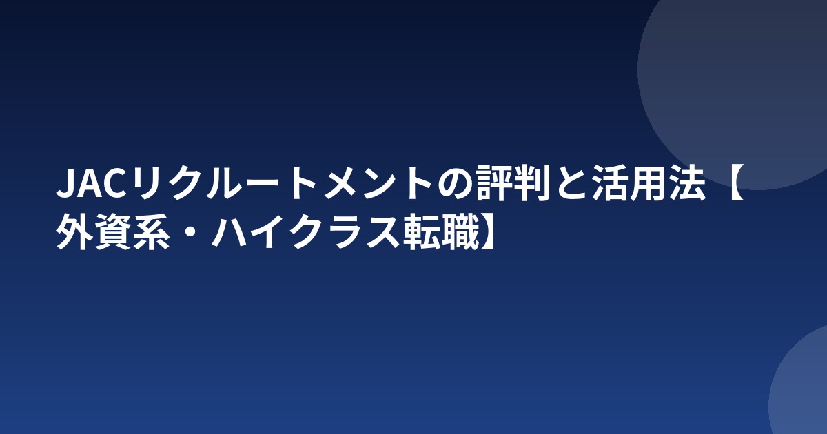 JACリクルートメントは、外資系・ハイクラス転職を目指すミドル世代にとって非常に頼りになるエージェントです。コンサルタントの質と非公開求人の質に定評があります。ただし年収層やエリアによっては合わない場合もあるため、他のエージェントと併用しながら活用することをおすすめします。