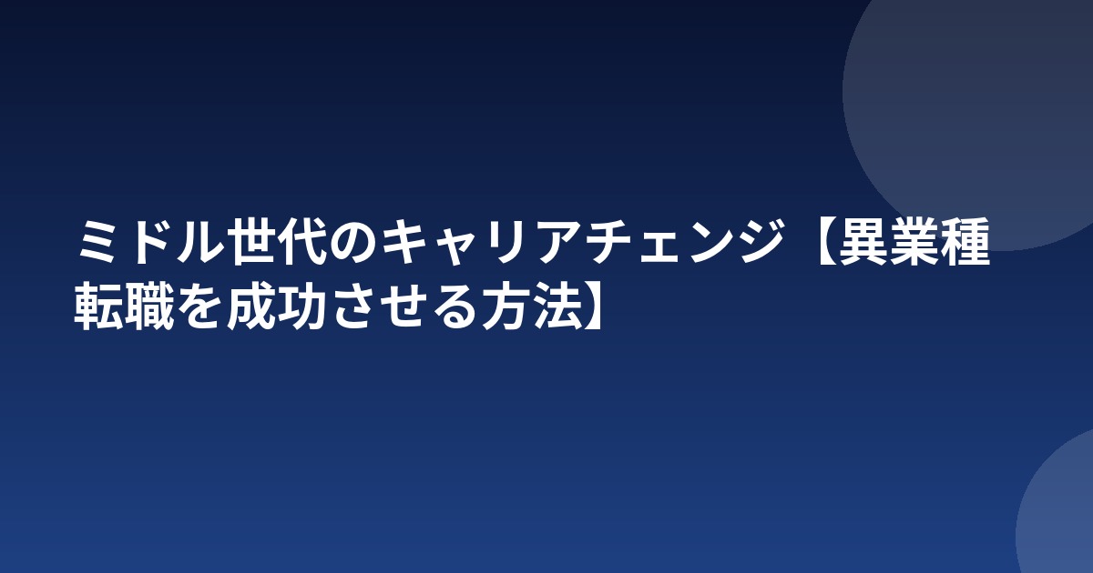 ミドル世代のキャリアチェンジ【異業種転職を成功させる方法】
