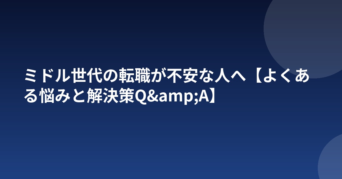 30代後半から50代にかけての転職は、20代の転職とは比べものにならないほど多くの不安がつきまといます。家族の生活、住宅ローン、年齢の壁、スキルの陳腐化など、考えるべきことが多いからです。