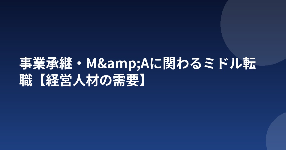 事業承継・M&A領域は、ミドル世代の経験が直接活かせる成長分野です。経営視点とコミュニケーション力を武器に、社会的意義の大きいキャリアに挑戦してみてはいかがでしょうか。