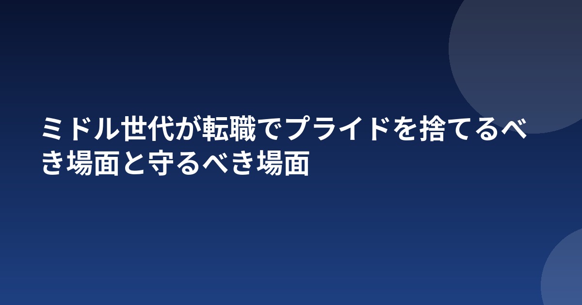 40代・50代で転職を考えるとき、これまでのキャリアで培ったプライドが転職活動の妨げになることがあります。一方で、プロとしての矜持を持つべき場面もあります。この使い分けが転職成功のカギです。