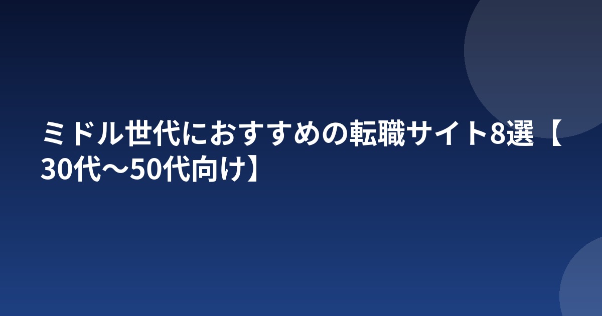 ミドル世代におすすめの転職サイト8選【30代〜50代向け】