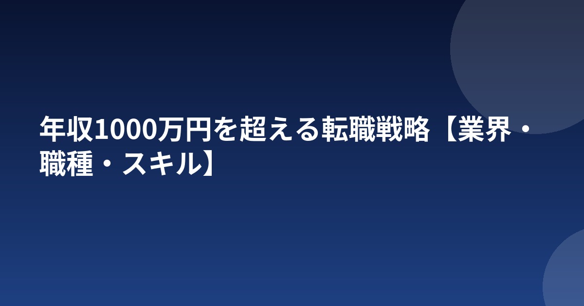 国税庁の調査によると、年収1000万円以上の給与所得者は全体の約5%です。決して簡単ではありませんが、適切な業界・職種選びとキャリア戦略があれば到達可能な目標です。