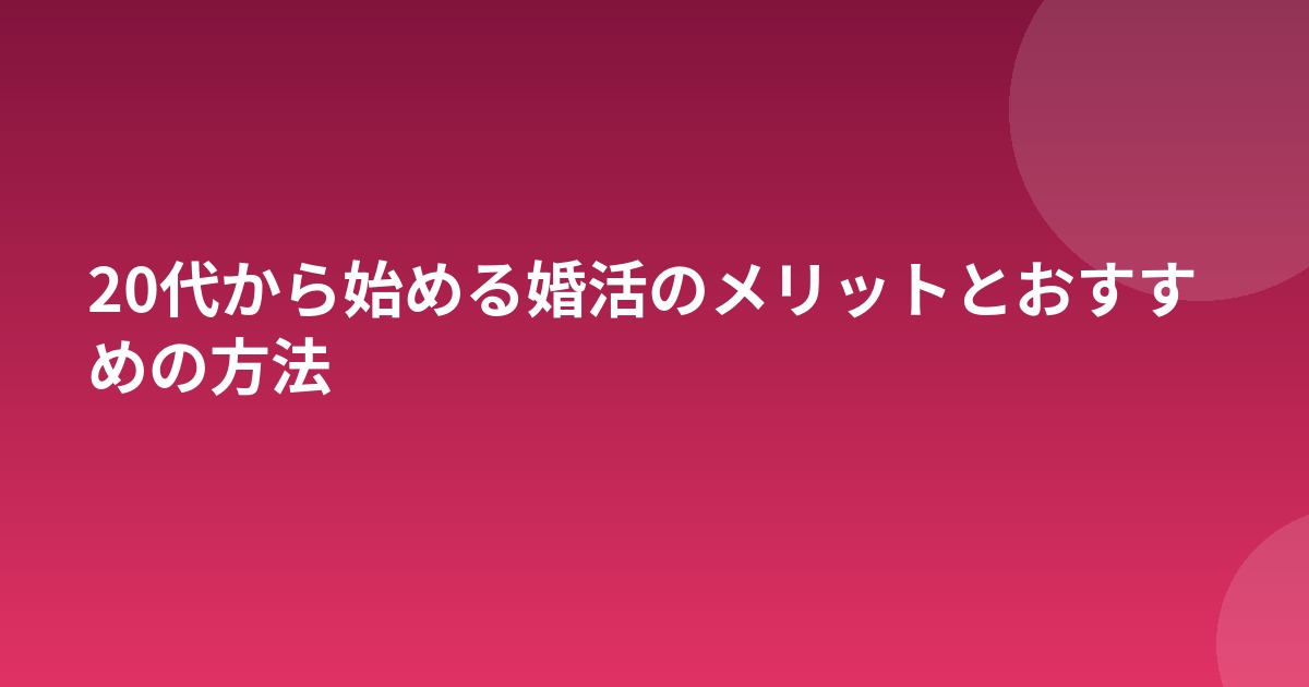 20代の婚活は「早すぎる」ことはありません。むしろ早く始めた人ほど、理想の相手と出会い、満足のいく結婚生活を送っている傾向にあります。まずは気軽にマッチングアプリや婚活パーティーから始めてみましょう。