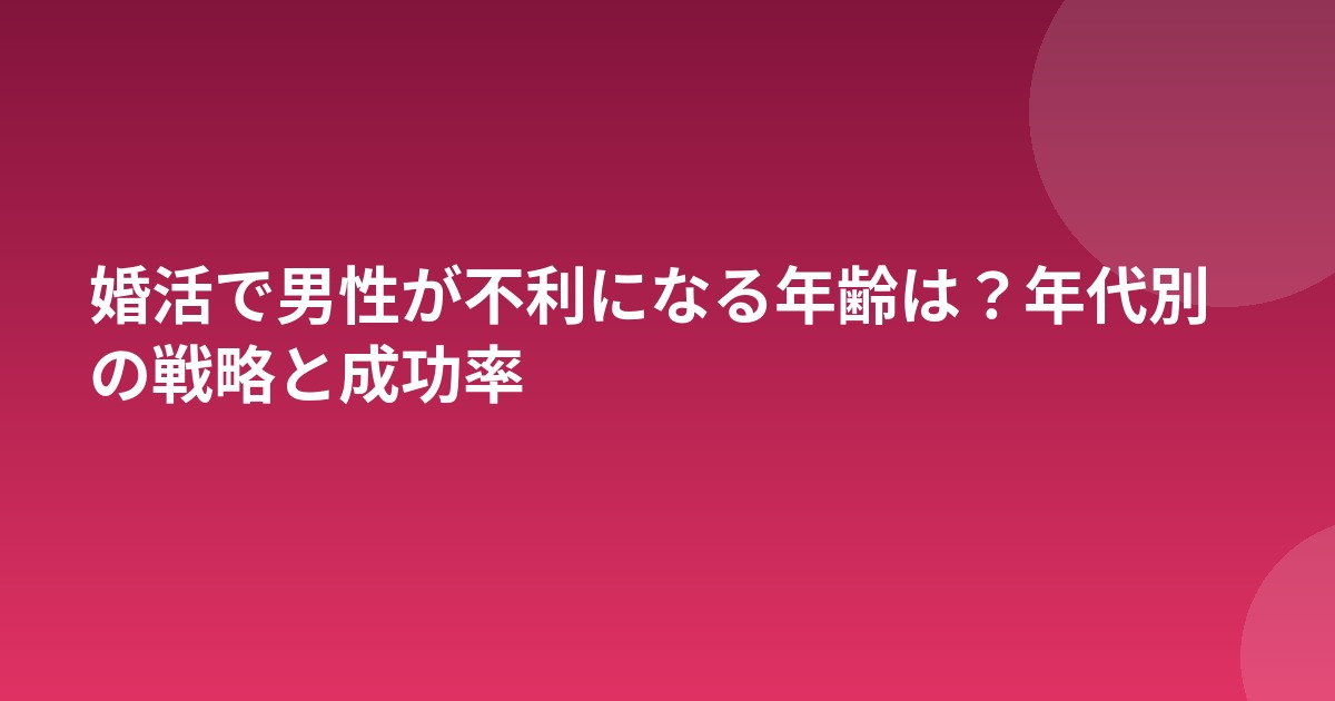 この記事では、婚活データをもとに男性が不利になり始める年齢や、年代別の最適な戦略を解説します。