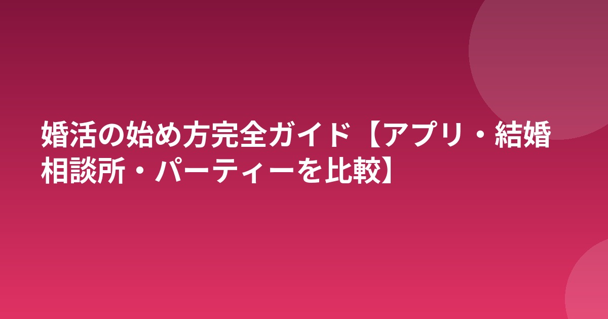 本記事では、代表的な婚活手段であるマッチングアプリ・結婚相談所・婚活パーティーの3つを比較しながら、最適な始め方を解説します。