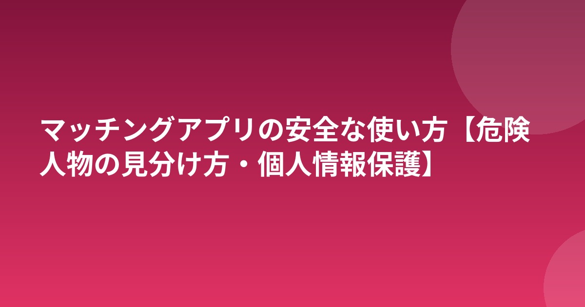 この記事では、危険人物の見分け方から個人情報の守り方まで、安全にアプリを使うための具体的な対策を解説します。