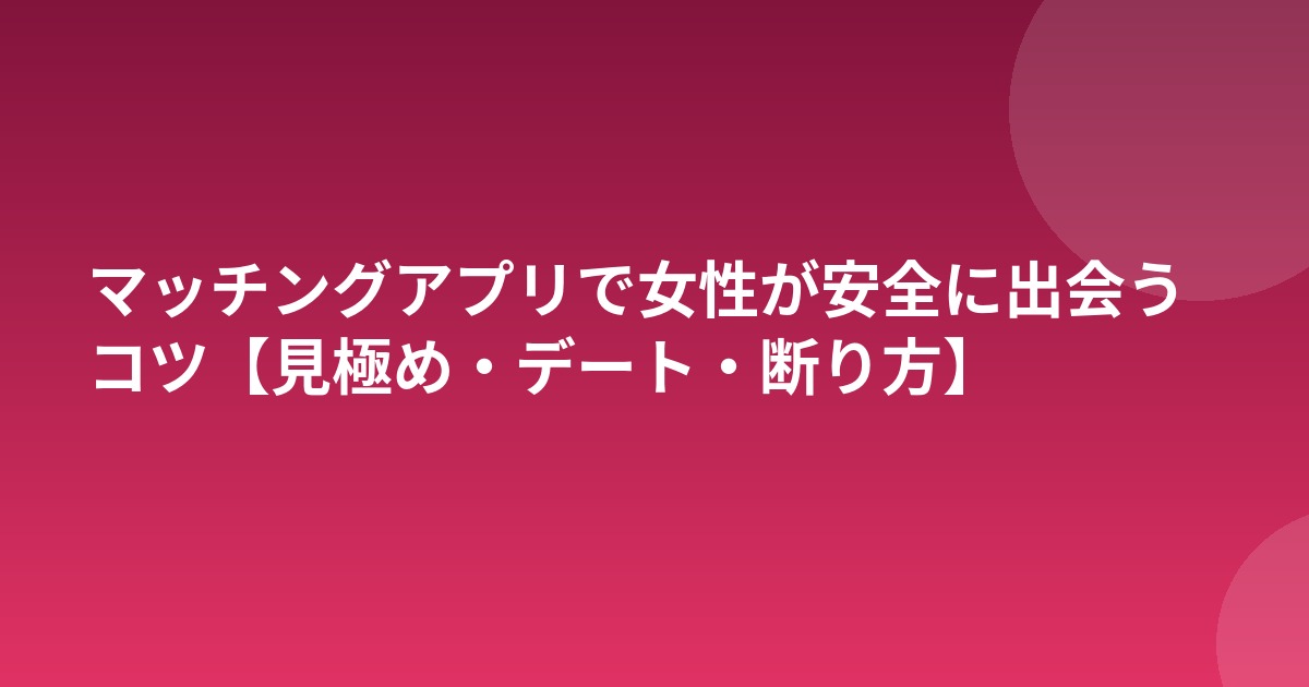 マッチングアプリは便利な出会いのツールですが、女性にとっては安全面が気になるところです。誠実な男性の見極め方を知り、適切な対策を取ることで、安心して素敵な出会いを見つけることができます。
