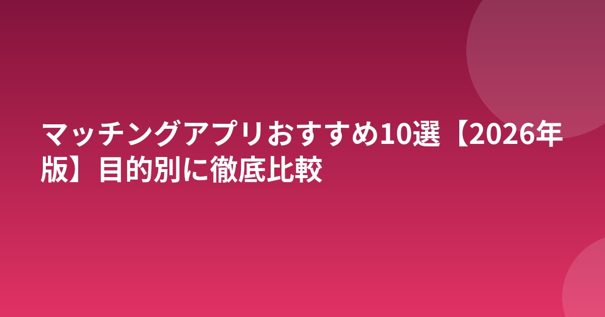 【2026年版】マッチングアプリおすすめ10選 比較表