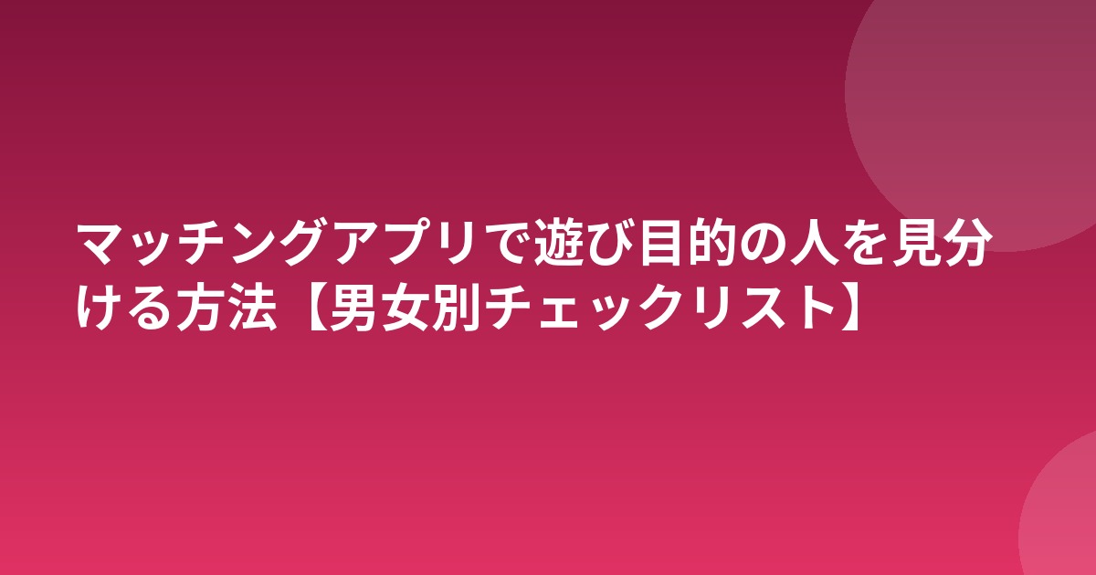 マッチングアプリで遊び目的の人を見分ける方法【男女別チェックリスト】