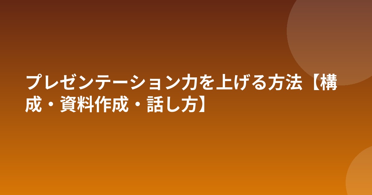 プレゼン力は「構成力」「資料作成力」「話し方」の3要素で構成されます。それぞれを意識的に鍛えることで、誰でもプレゼンが上手くなります。