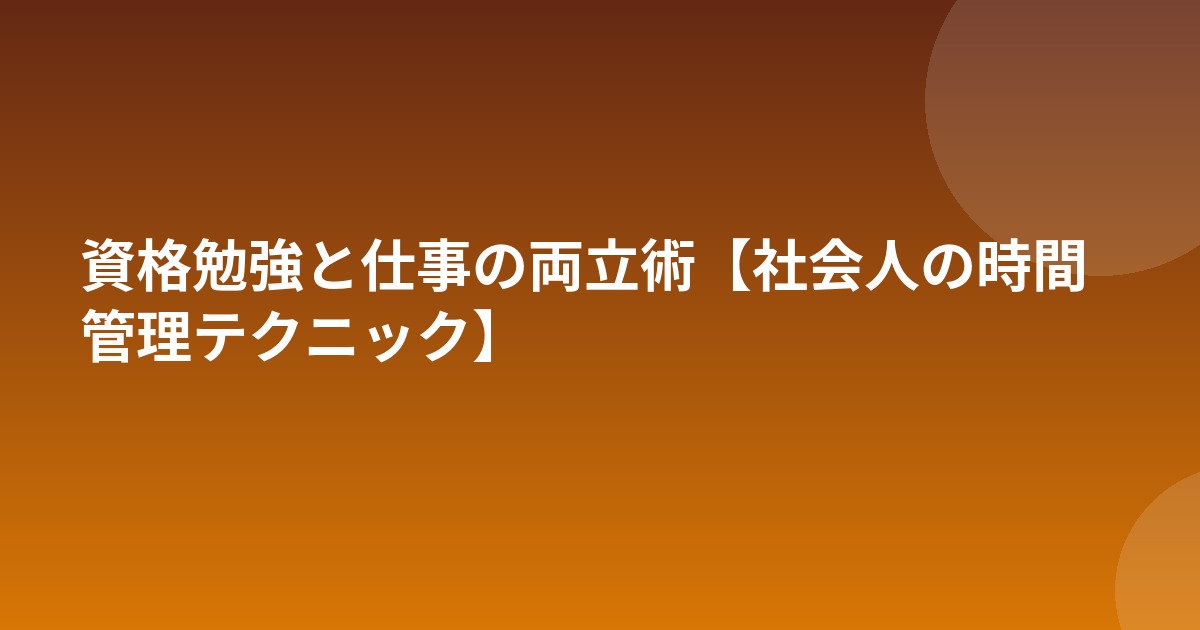 社会人にとって資格勉強の最大の敵は「時間の確保」です。フルタイムで働きながら学習時間を捻出するには、意識的な時間管理が必要です。多くの人が挫折するのは、無理な計画を立ててしまうことが原因です。現実的で持続可能な学習計画を作ることから始めましょう。